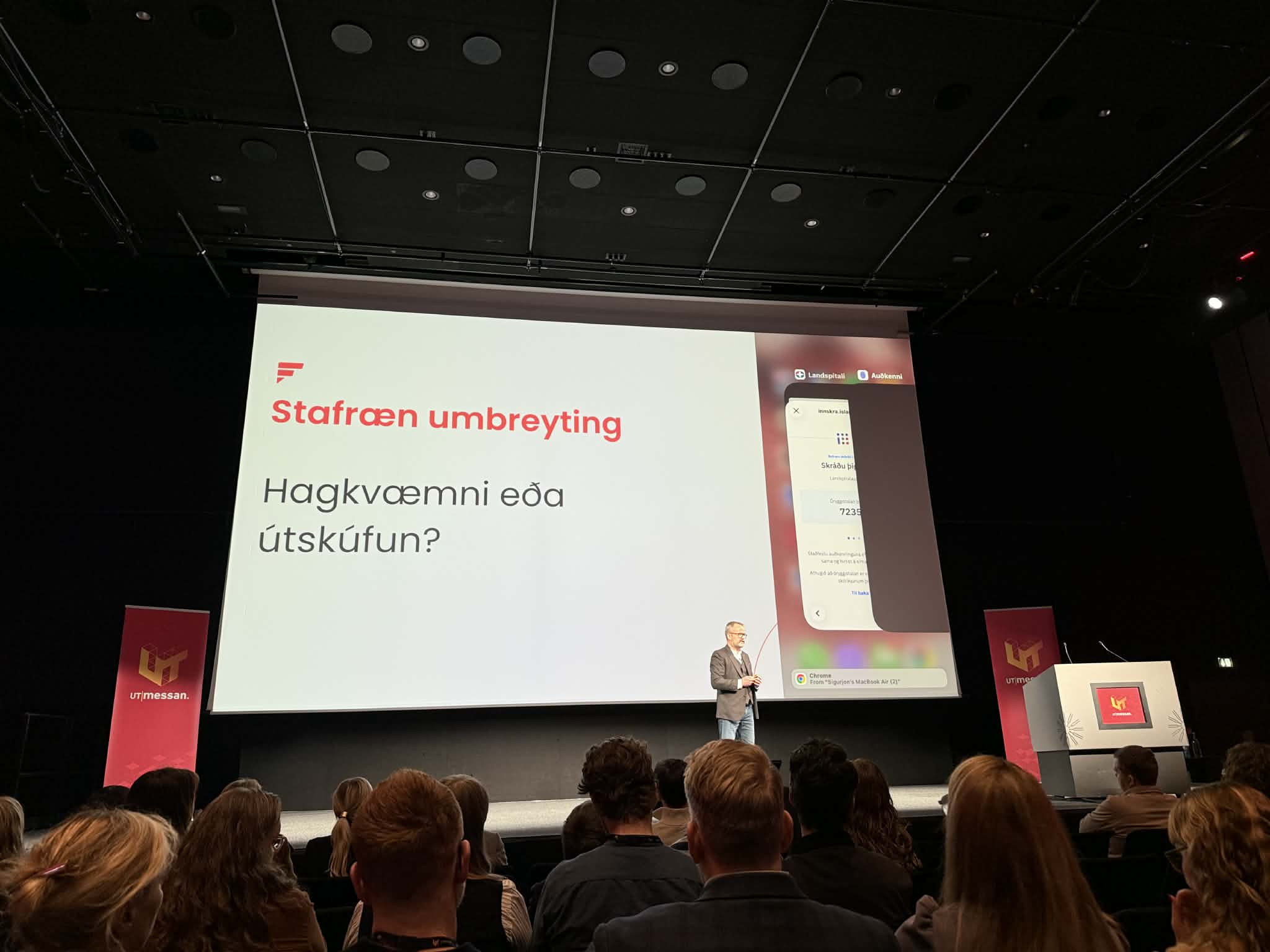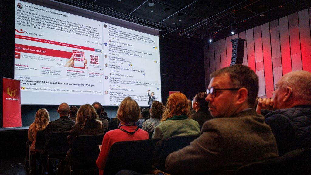 Á UT messunni þann 6. febrúar 2026 flutti ég erindi: Hvað höfum við gert 85 ára gamalli konu í stafvæðingunni? Óhætt er að segja að erindið og inntak þess hafi fangað mikla athygli. Fyrirlesturinn var afar vel sóttur en það var þéttsetið í Silfurbergi í Hörpu. Því miður er ekki til upptaka hjá Ský af fyrirlestrinum vegna tæknivandamála. Glærurnar eru til.